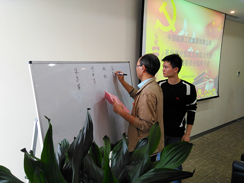 基地建設(shè)部共有9名黨員,隨著業(yè)務(wù)領(lǐng)域不斷擴(kuò)大,部門(mén)凝聚了一支老、中、青三代優(yōu)秀的黨員梯隊(duì)。為了使部門(mén)黨組織更加完善,激發(fā)黨員在工作中的先鋒模范作用,基地建設(shè)部于今年6月向中國(guó)能源工程集團(tuán)系統(tǒng)黨委提出成立黨支部的申請(qǐng),隨后召開(kāi)黨員大會(huì)確定支委候選人,并于10月20日選舉產(chǎn)生第一屆支部委員會(huì)。